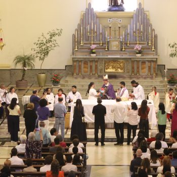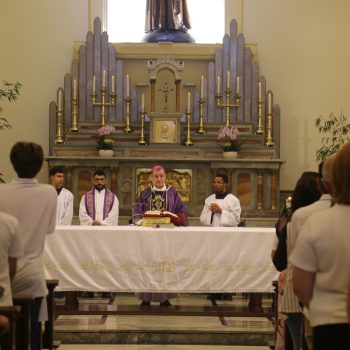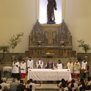 A celebração foi presidida por Dom Carlos Lema Garcia, bispo auxiliar da Arquidiocese de São Paulo, e concelebrada pelo pároco Frei Florival Mariano de Toledo, em um clima de fé, comunhão e ação de graças.